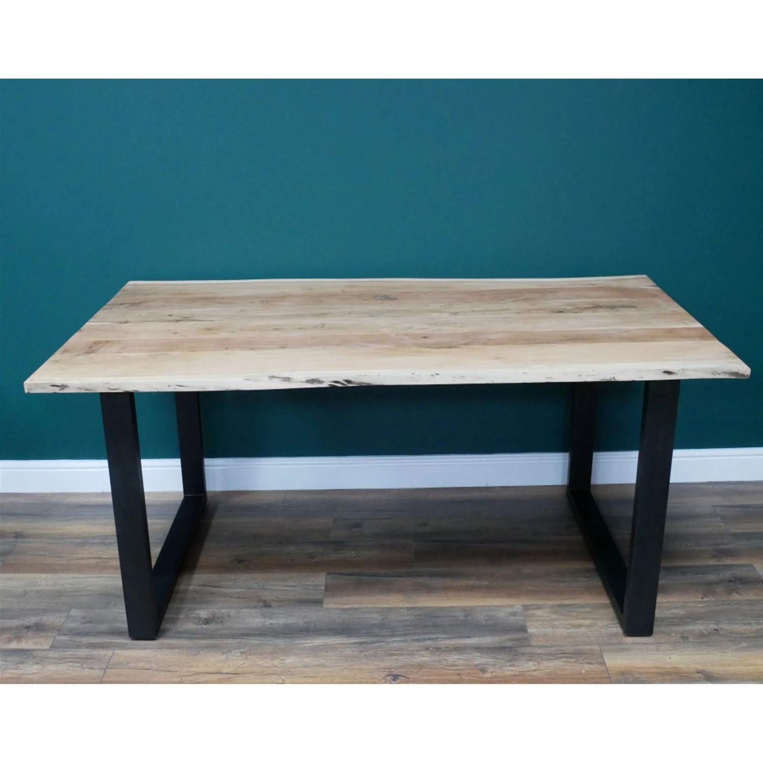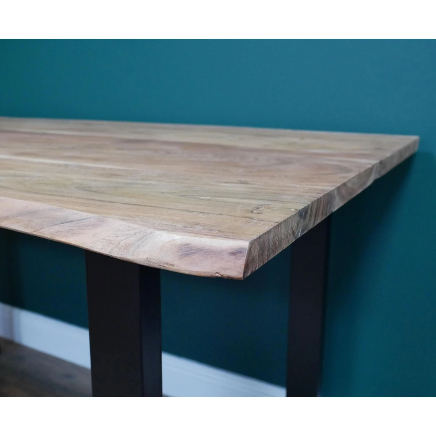 Enjoy meal times with family or friends with this beautifully simple yet stylish Acacia Wood Large Living Edge Dining Table. Boasting an industrial design, it comes manufactured with an iron metal straight leg base with a natural finished acacia wood table-top. Rectangular in design, it can fit all the family around, giving you a chance to catch up over dinner. Adding a contemporary touch, it’s designed to be long-lasting and is durably built with added stability.Â