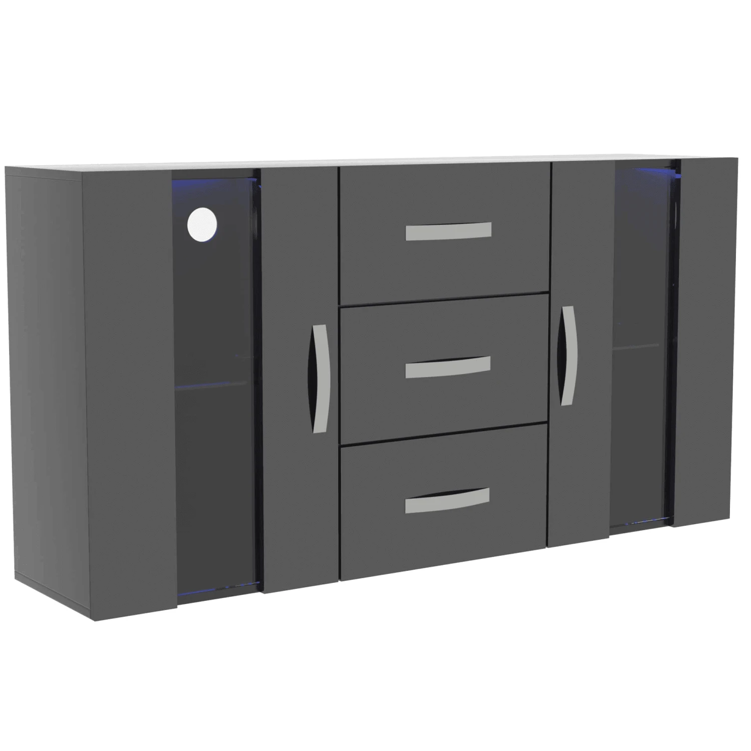 The Astro 2 Door 3 Drawer Black LED Sideboard provides lots of useful storage space for your home with the use of 2 doors with an internal shelf on either side and 3 drawers set in the middle of this stunning sideboard. Enhancing the design is a high gloss sleek exterior to add to a contemporary style, allowing you to boast to your friends about your new purchase. The fancy LED lights are situated around the inside of the sideboard, shining through it’s glass panelled doors and emitting a bright glow to create a warm ambience for the room. A remote control is included to switch the colour of the LED’s and have it to your satisfaction. This Astro 2 Door 3 Drawer Black LED Sideboard is not one to miss out on for a stylish upgrade for your interior.