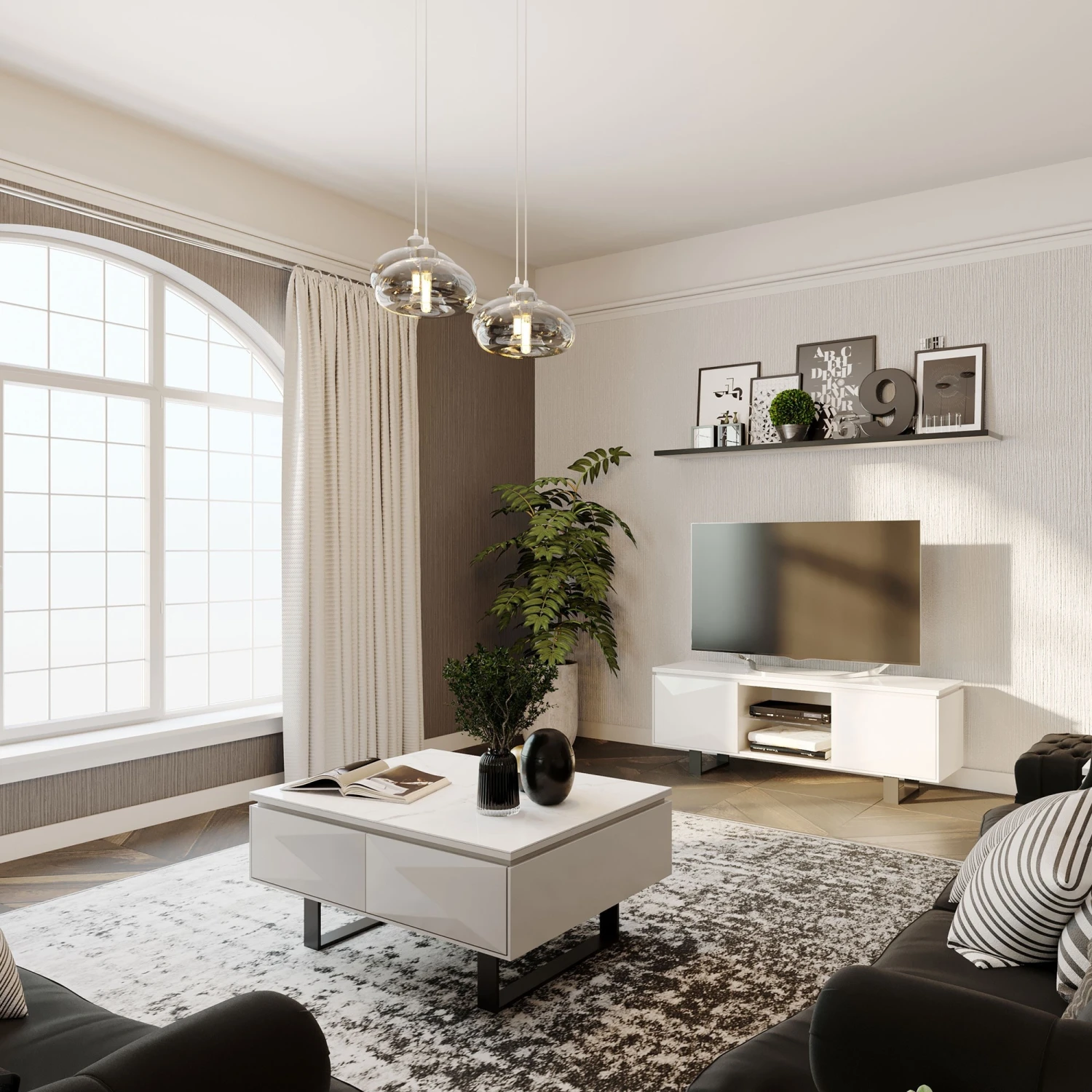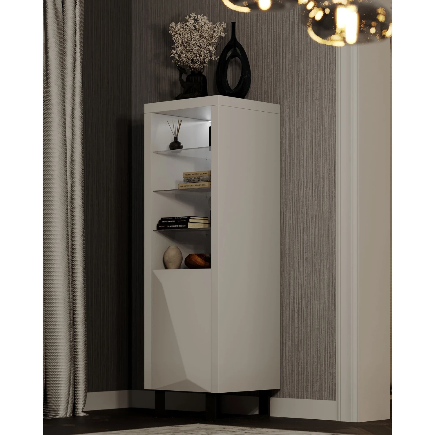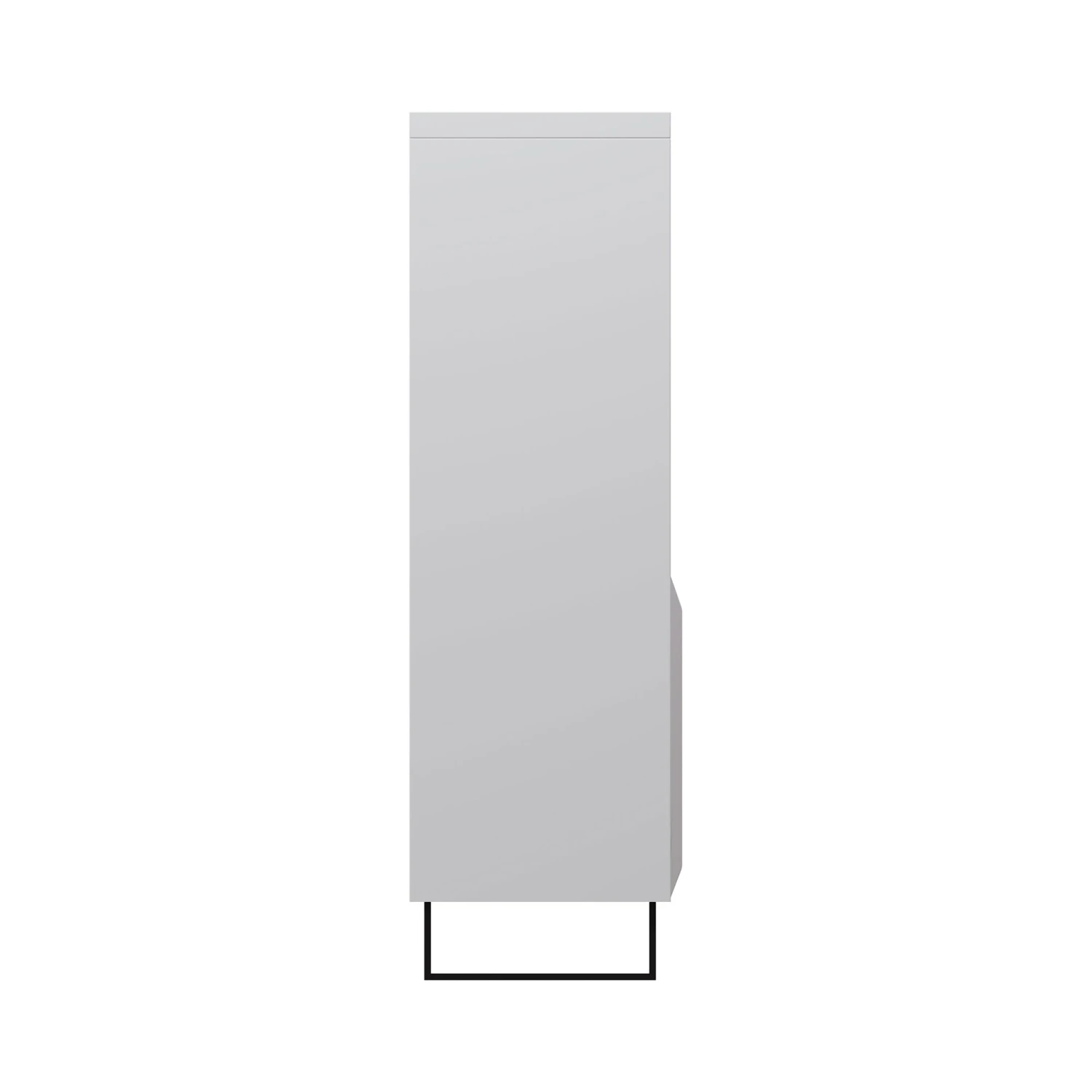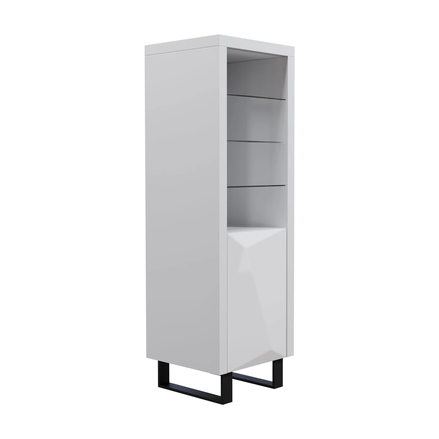 Adding a luxury and modern design to your home with this Belarmino Gloss Grey Tall Narrow Bookcase. The bookcase comes in a sleek grey gloss finish with a bevelled design and is mounted on contrasting black U shaped legs. Offering plenty of storage the bookcase features 3 glass shelves and a door to the bottom featuring a bevelled design, adding interest to the bookcase. By night the bookcase features a white LED light around the top of the cabinet, creating a cosy atmosphere in your home. Display this bookcase with other matching items from the Belarmino Dining Grey Collection.