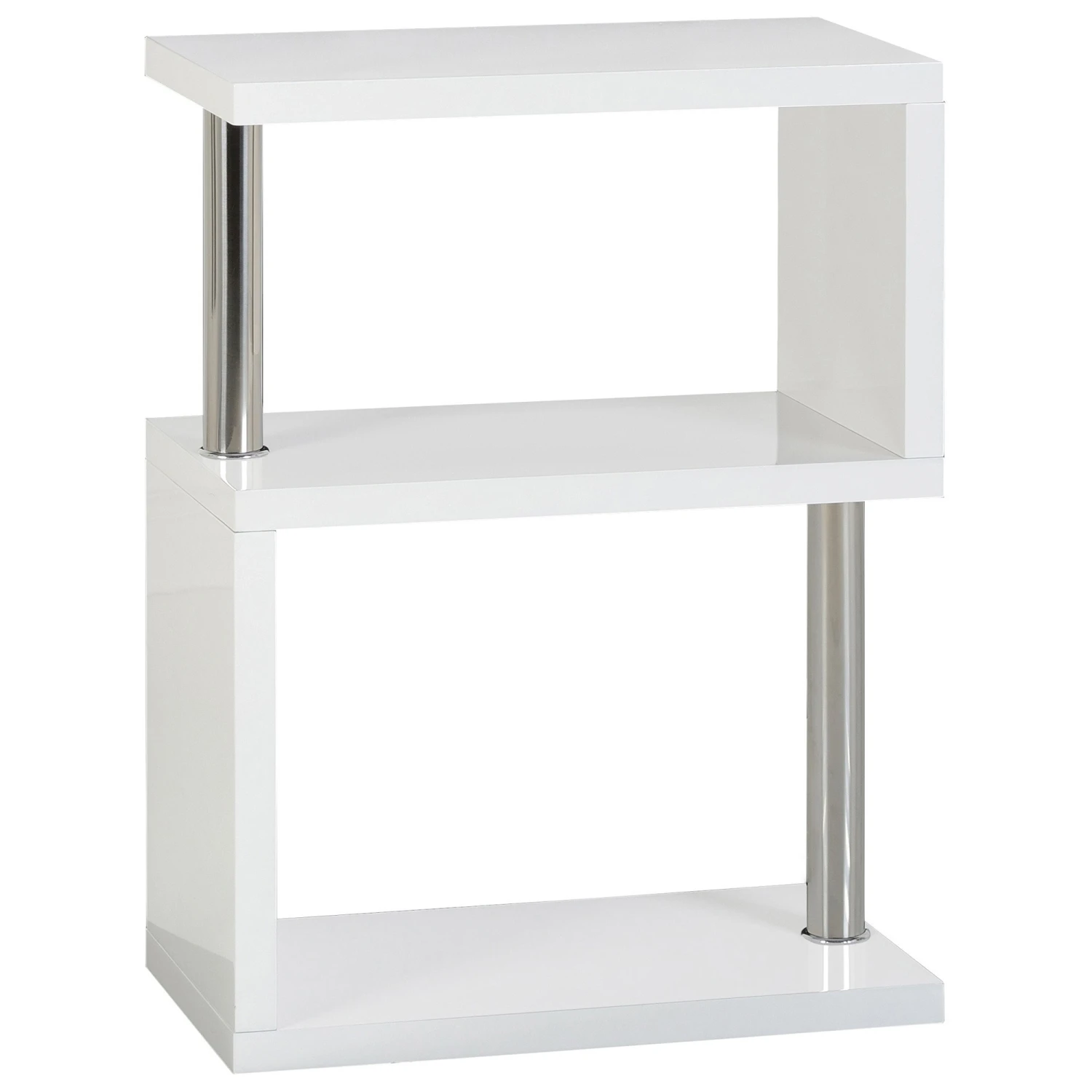 The Charisma 3 White Shelf Unit offers a contemporary look to any bedroom or living room. The White Gloss/Chrome finish allows for a modern design and is made from metal and plastic gloss veneer and stands on plastic feet.Â
