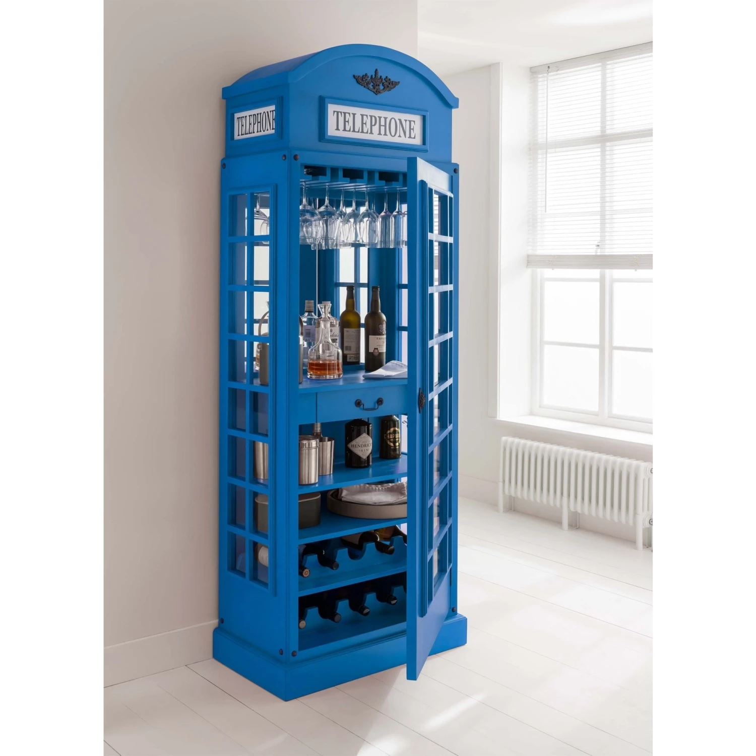 This stunning drinks cabinet is a truly unique telephone box design which will without a doubt impress guests. A designer drinks cabinet come display cabinet could be the finishing touch to any dining room or bar area.