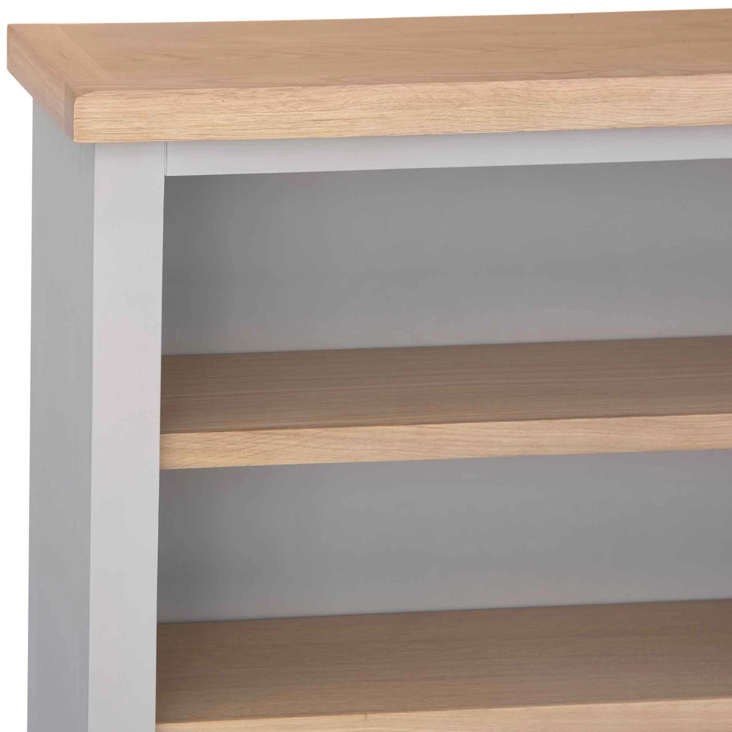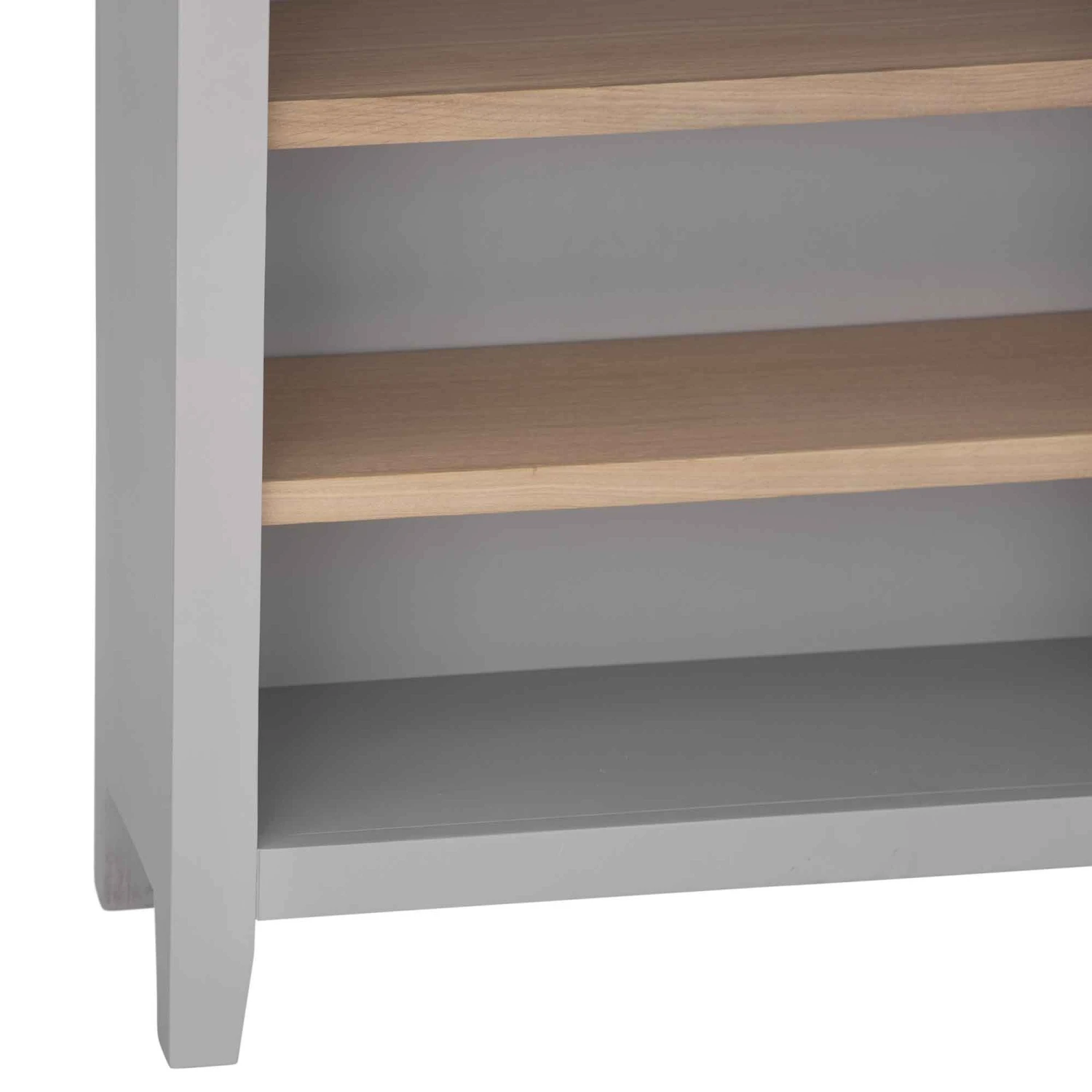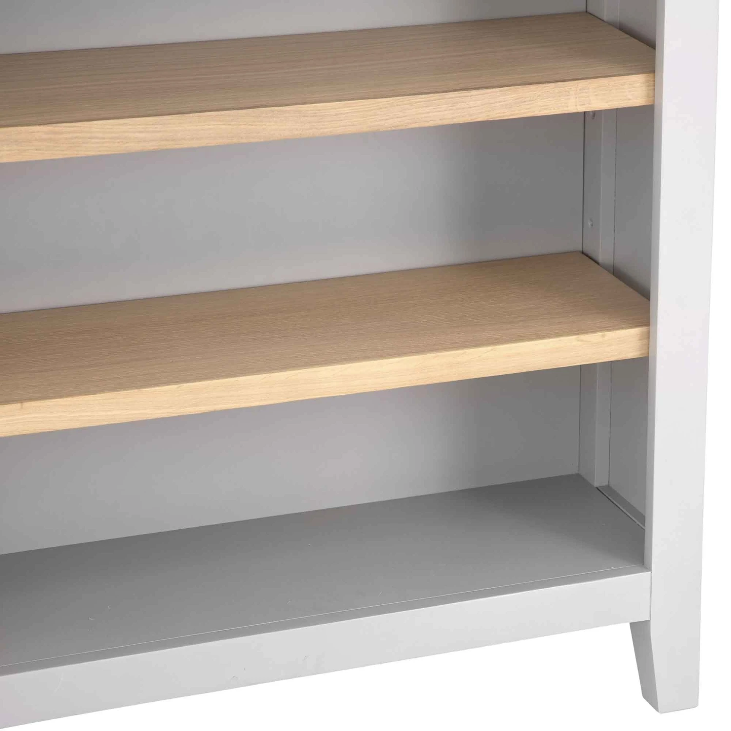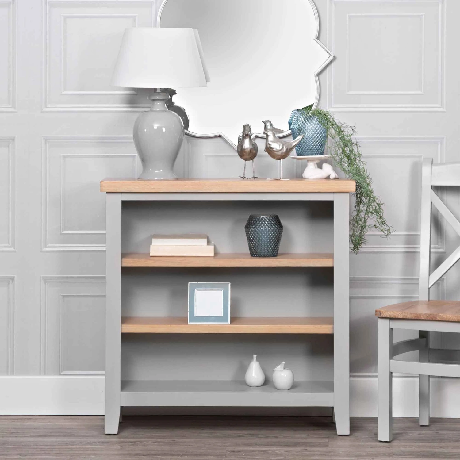 The Eastbury Grey Small Wide Bookcase comes in a grey painted wood, trimmed with washed oak shelving and top. The small bookcase can be used to keep your book tidy or to display your ornaments and plants. The Eastbury Grey Dining Collection seamlessly blends rustic warmth oak with a contemporary design. Style this bookcase with other pieces from the collection to create a matching room.