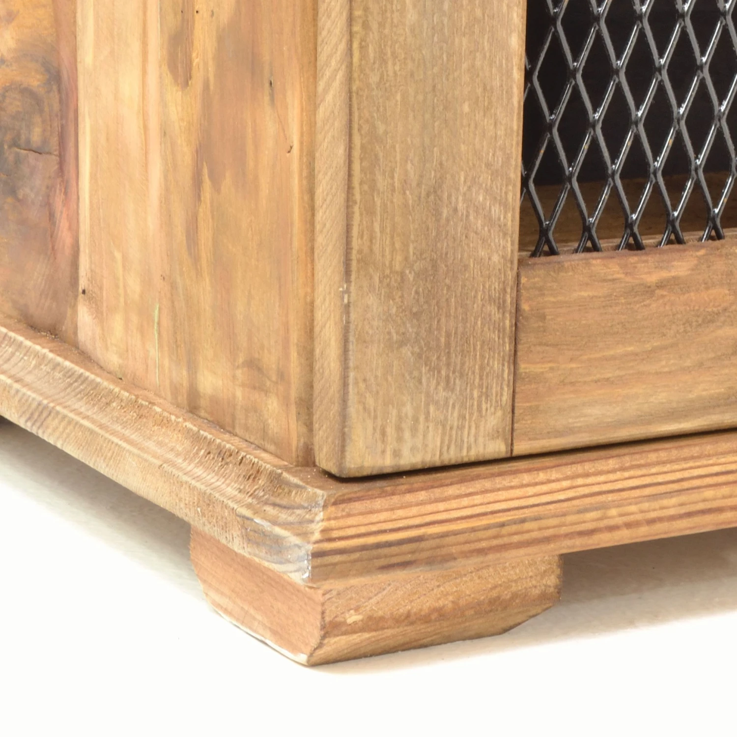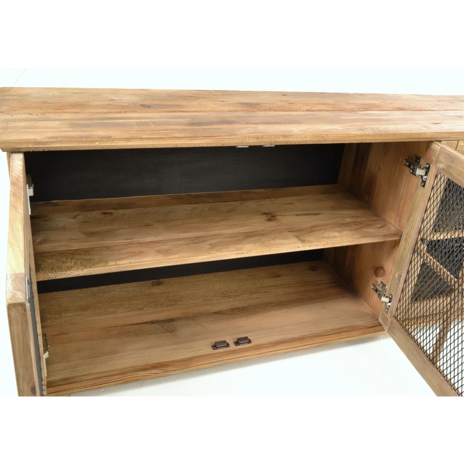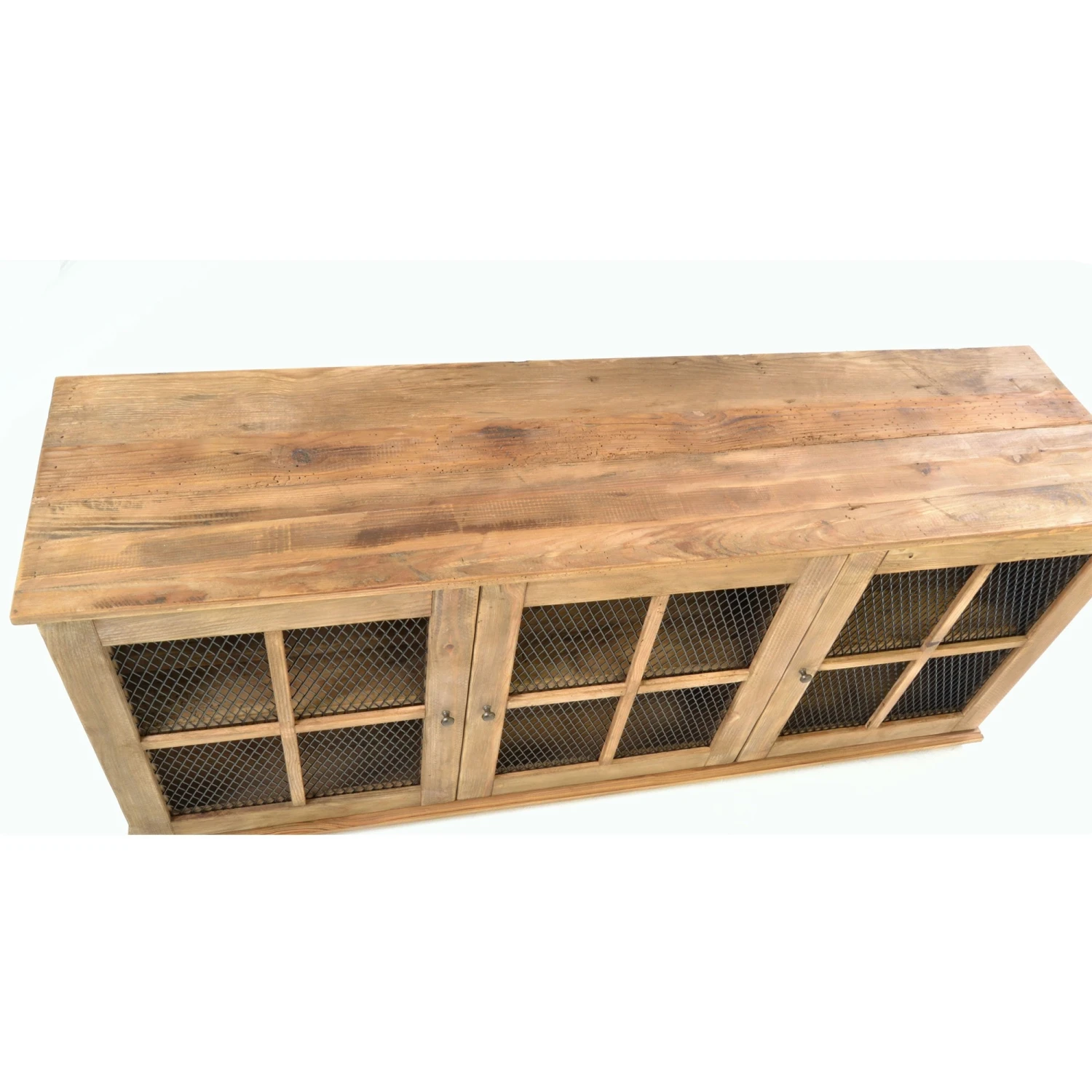 The Fair Isle 3 Door Metal Front Sideboard has an intriguing industrial look with unique black mesh front windows on the doors. This is sure to add character to the room, also made from reclaimed pine so this sideboard definitely has a story to tell. Could be placed in the living room, dining room or office.