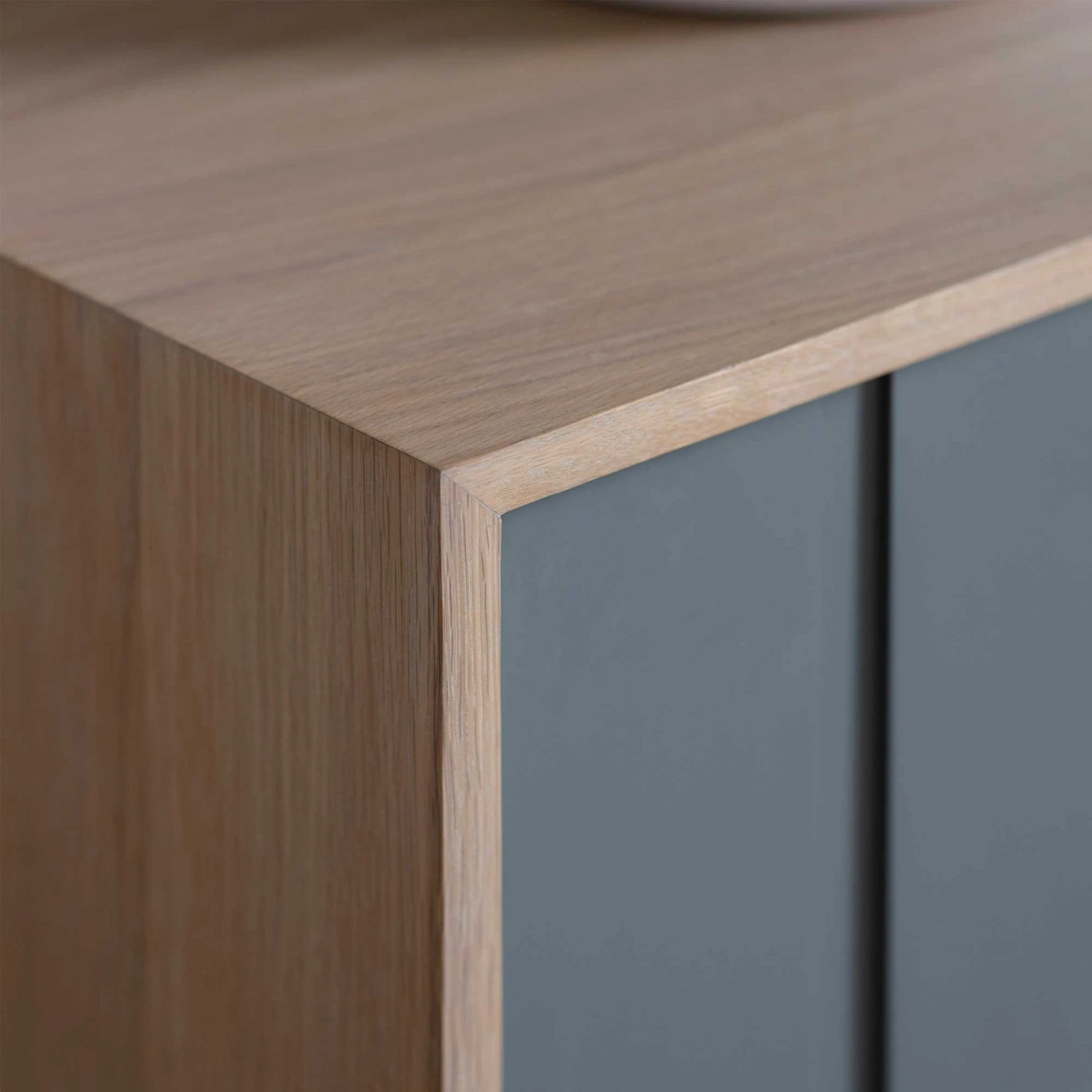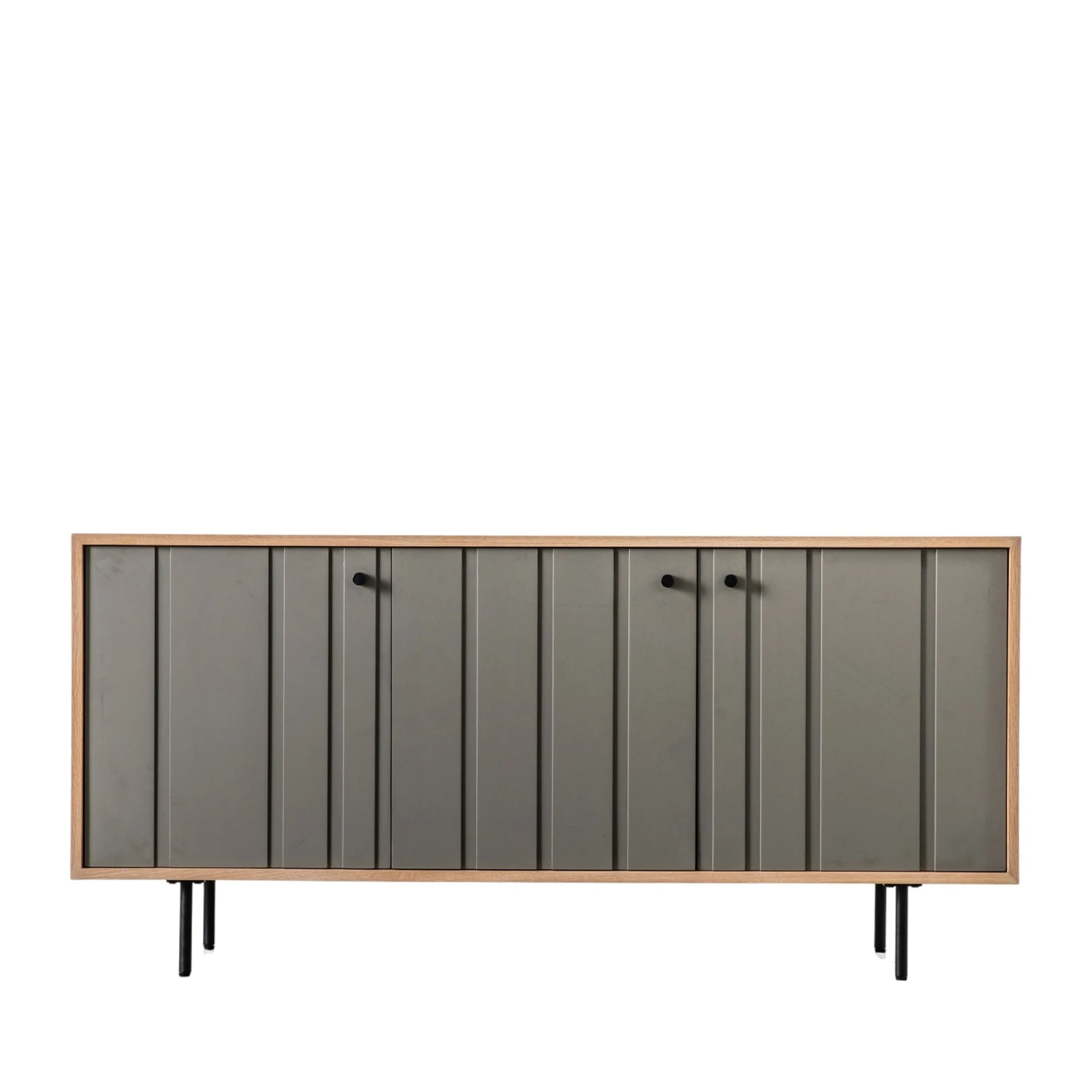 Providing your home with practical storage space, the Fuji 3 Door Sideboard is a must-have! Designed with a beautiful Scandi styling, this 3 door sideboard comes in a lovely grey colourway with a natural wood outer finish. Contrasted nicely with its black metal legs and small black metal round handles, it is solidly crafted for a long-lasting build. Featuring a large cupboard space inside, it also has an internal drawer that is ideal for housing smaller items. Great to place in a hallway or dining area, this Fuji Sideboard is ideal for decluttering your living space.