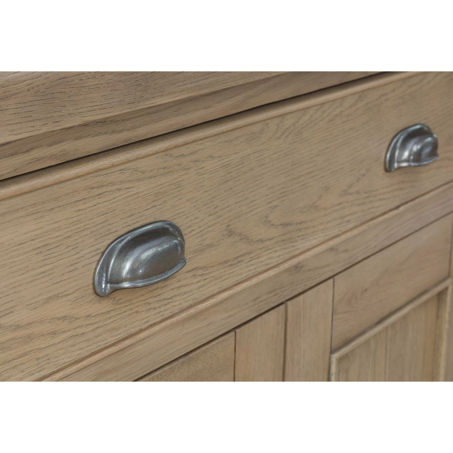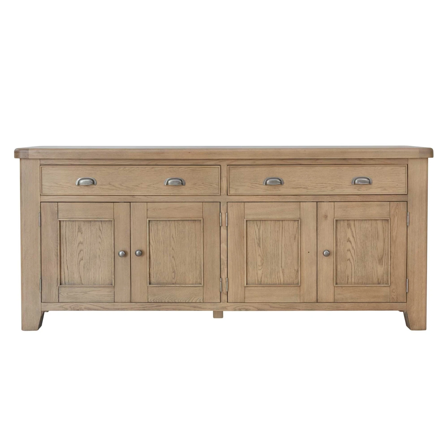 Feast your eyes on this amazing and chic Hampton Oak 4 Door Sideboard! This is a large, sturdy sideboard with plentiful amounts of storage within, so you are sure to find a stylish place to keep all your ornaments and other pieces.