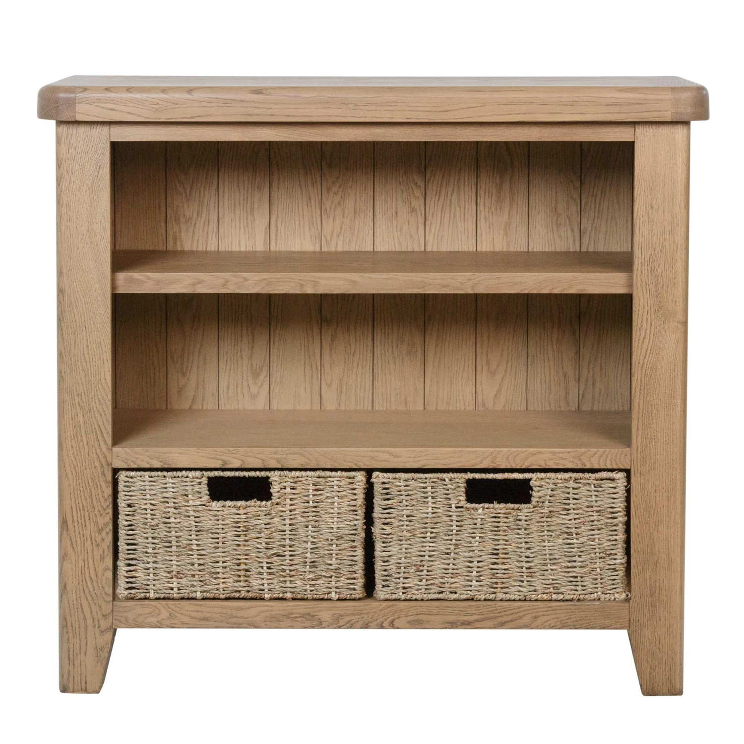 Display your book collection with pride with the Hampton Oak Small Bookcase! This sleek and stylish bookcase comes with two wicker storage baskets and two shelves, perfect for displaying your books and ornamental pieces. This bookcase also features a stunning oak finish.