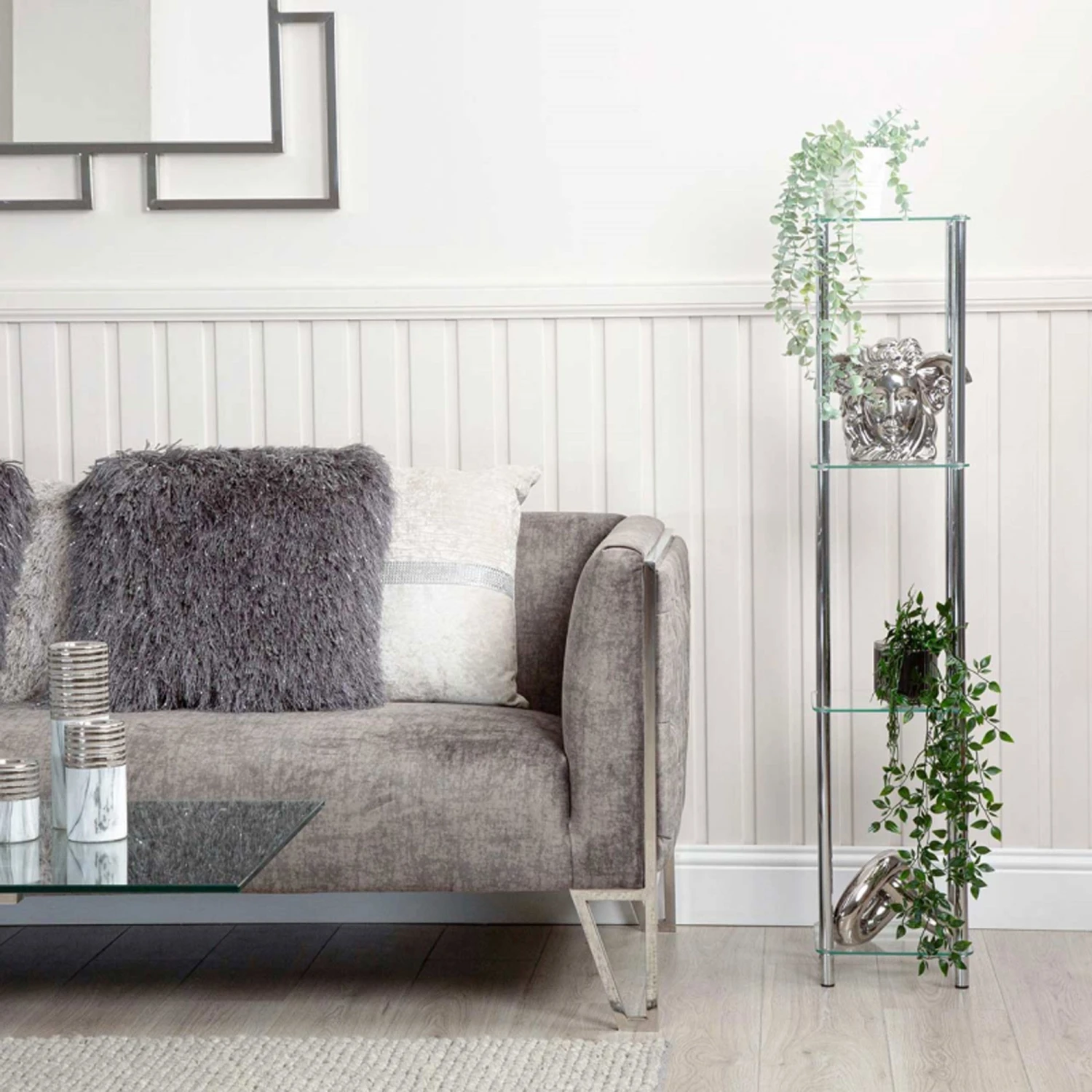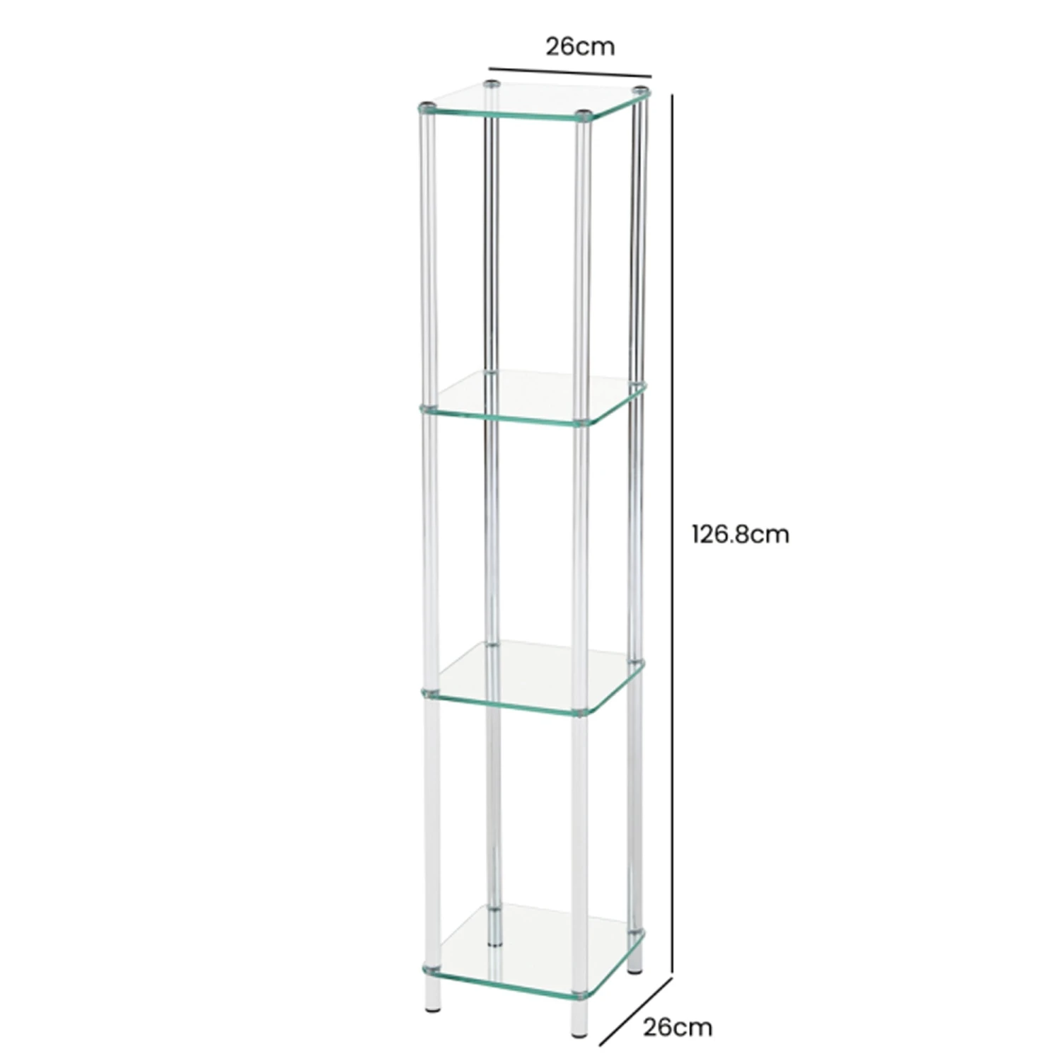 The Harry 126cm Chrome and Glass 3 Tier Display Unit would be an amazing addition to the home. Includes 3 glass shelves supported by high quality steel in a beautiful and stylish chrome finish. Could be used in the hallway to display artwork or the dining room to store plates and bowls.