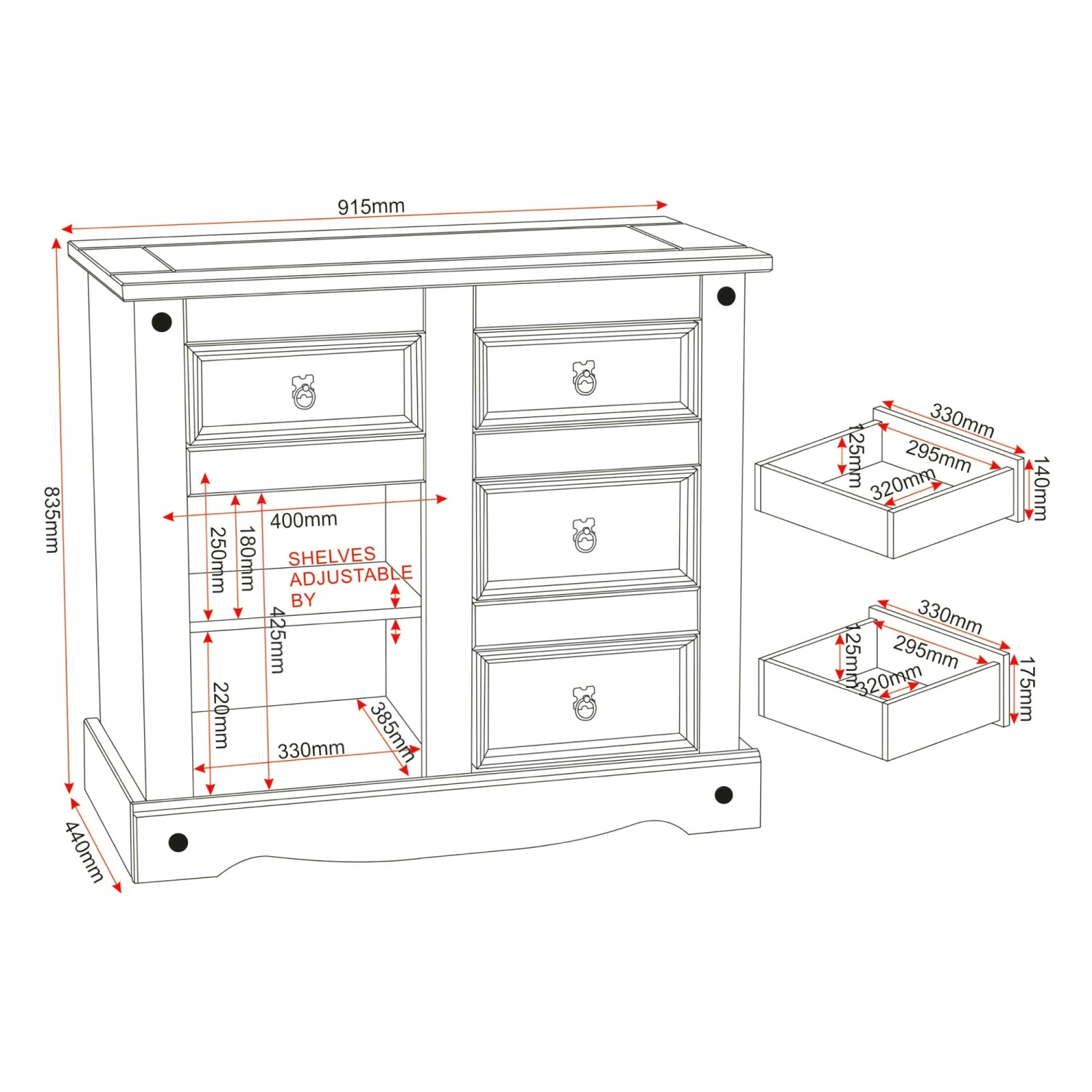 Introducing the Huxley Pine 1 Door 4 Drawer Sideboard, this sideboard is a beautiful piece of furniture that allows you not only store bit and pieces to keep out of sight. But it makes a excellent location to place ornaments thanks to it’s classic style.
