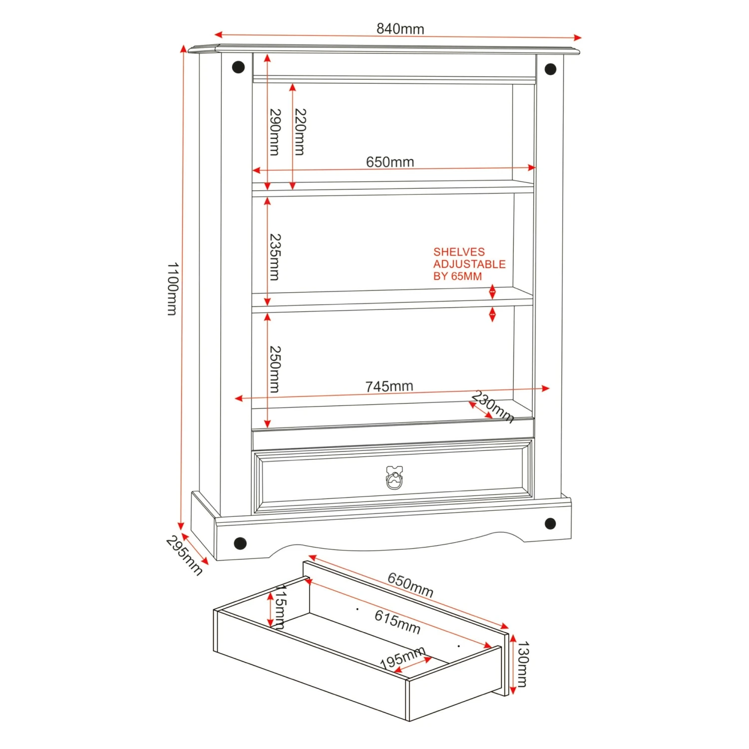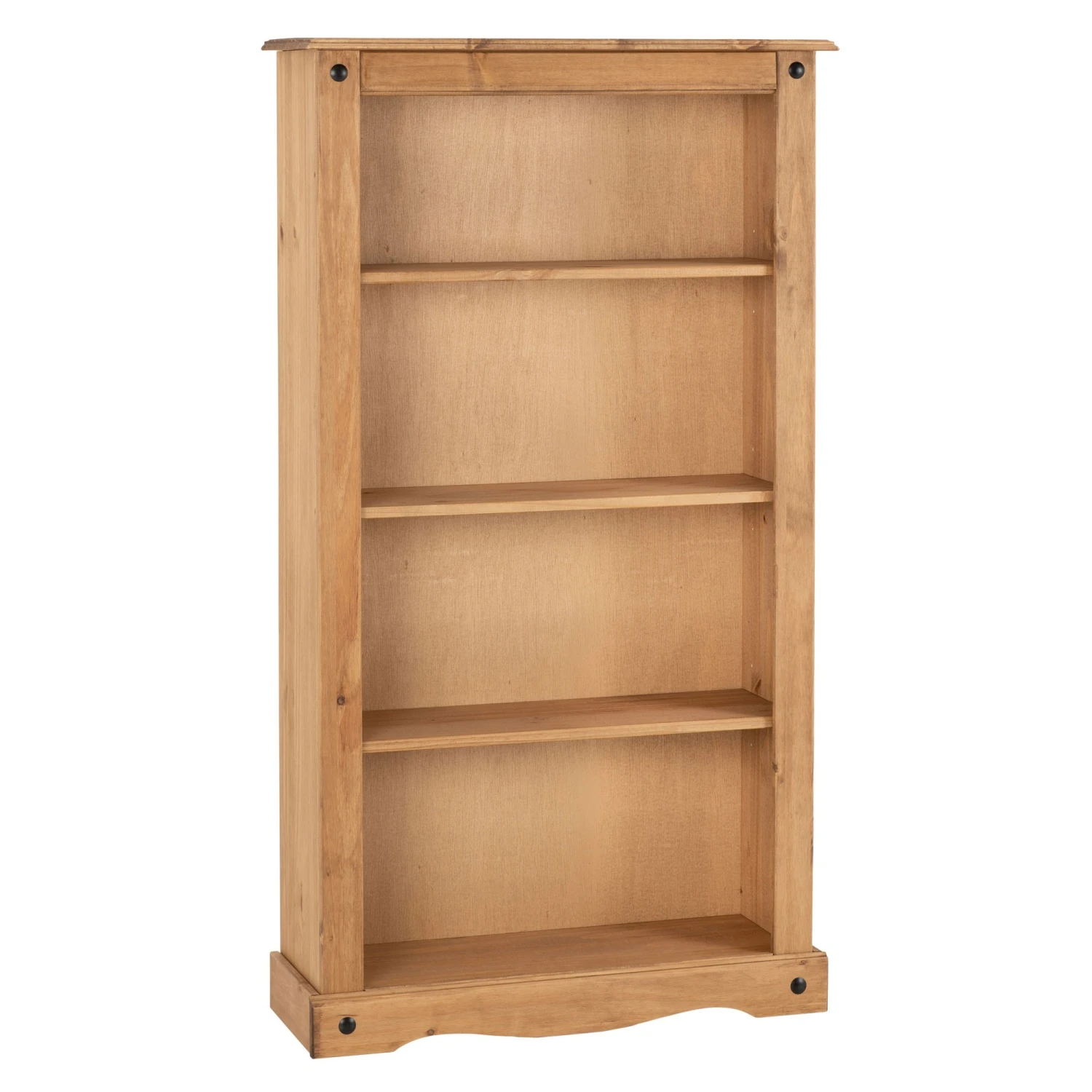 This Huxley Pine Medium Bookcase has 4 shelves for storing huge book collections, including novels or encyclopaedias. The bookcase stands 83.5cm tall, and is often stood against a wall or in the corner of a room. This fabulous bookcase is not just for book lovers, but those who like to display photo frames, ornaments, or life objects.Â