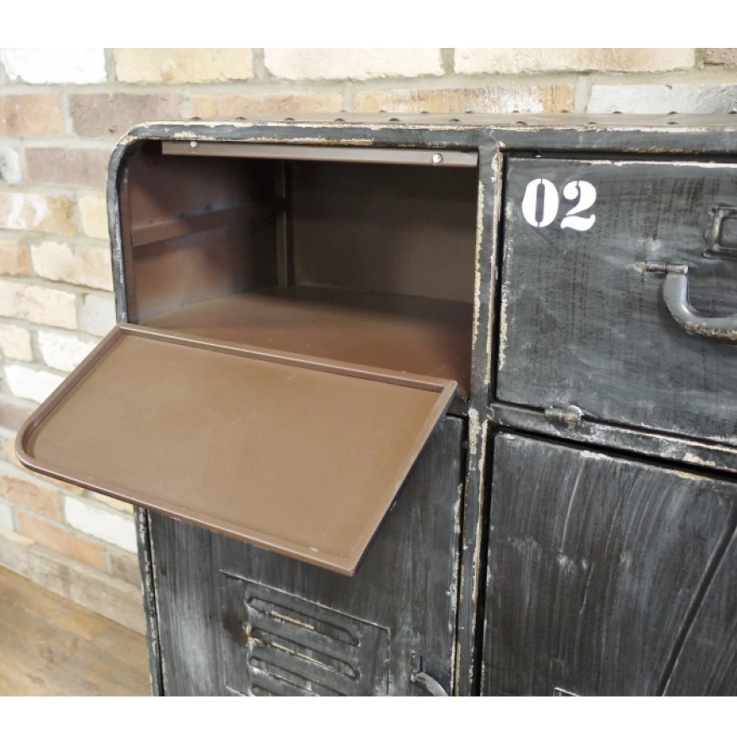 We are proud to introduce this unique industrial style cabinet. It has tonnes of storage space including 2 drawers and 2 cupboards. This would be perfect for any room.
