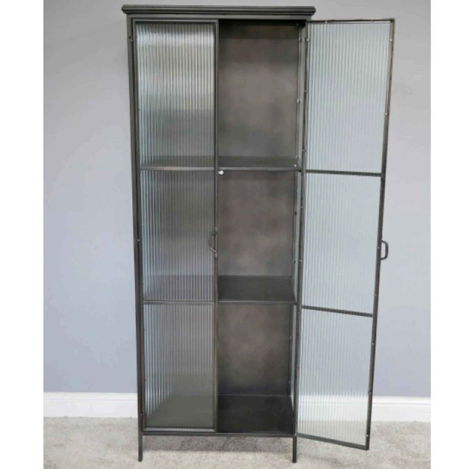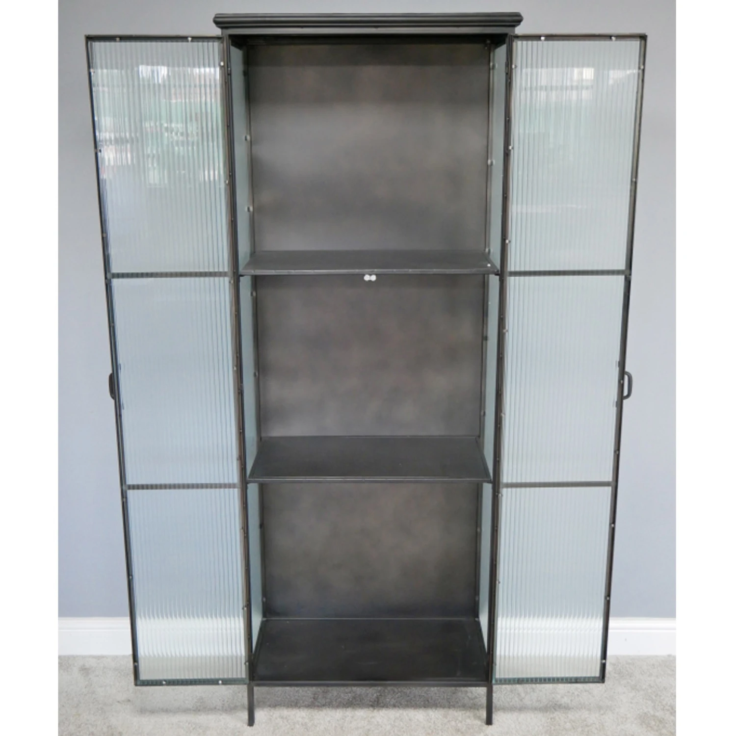 This Large Black Metal Industrial Display Cabinet is the perfect way to add a stylish storage solution to your home. Crafted from a metal frame with glass panels allowing you o see within, it is guaranteed to compliment the rustic or industrial interior style. With three shelf spaces inside, it proves to be practical as well as a design led piece.
