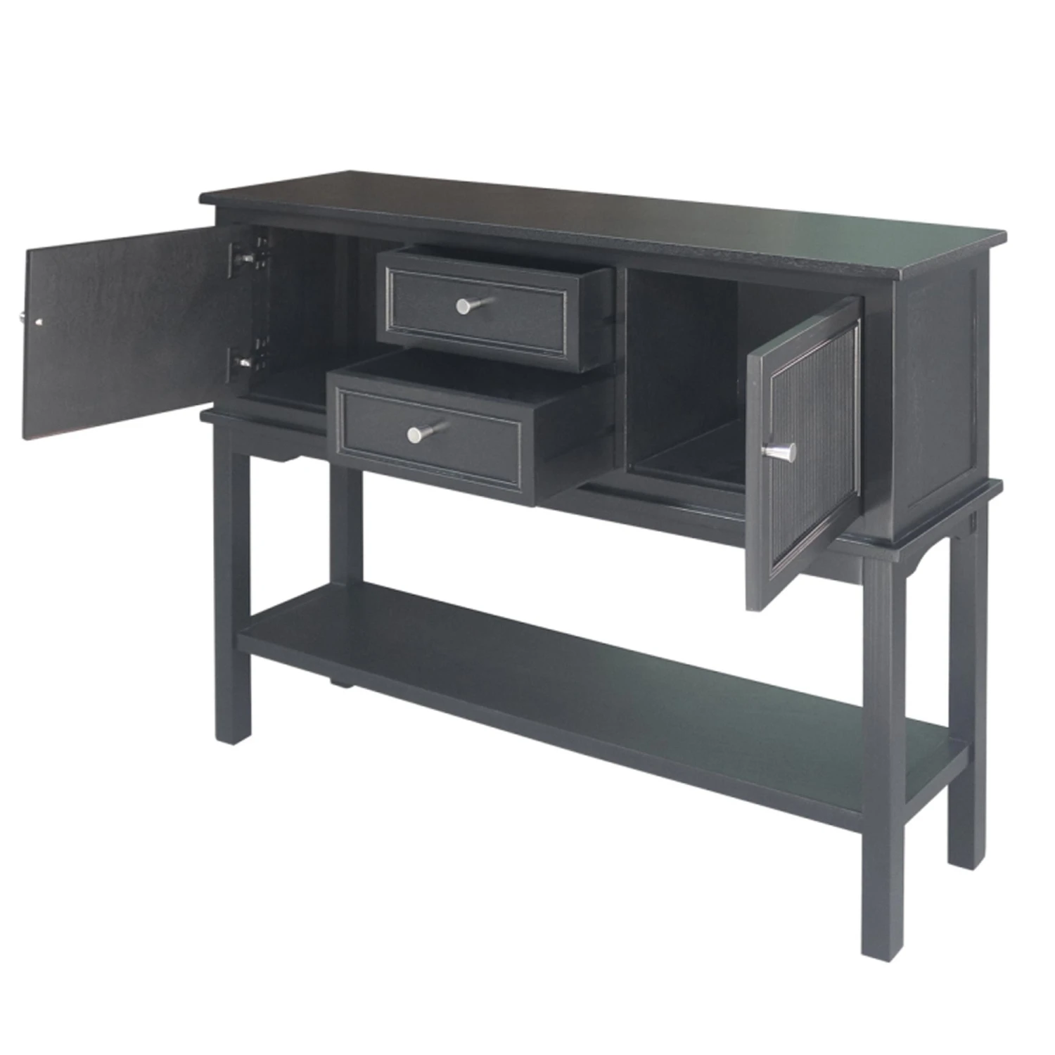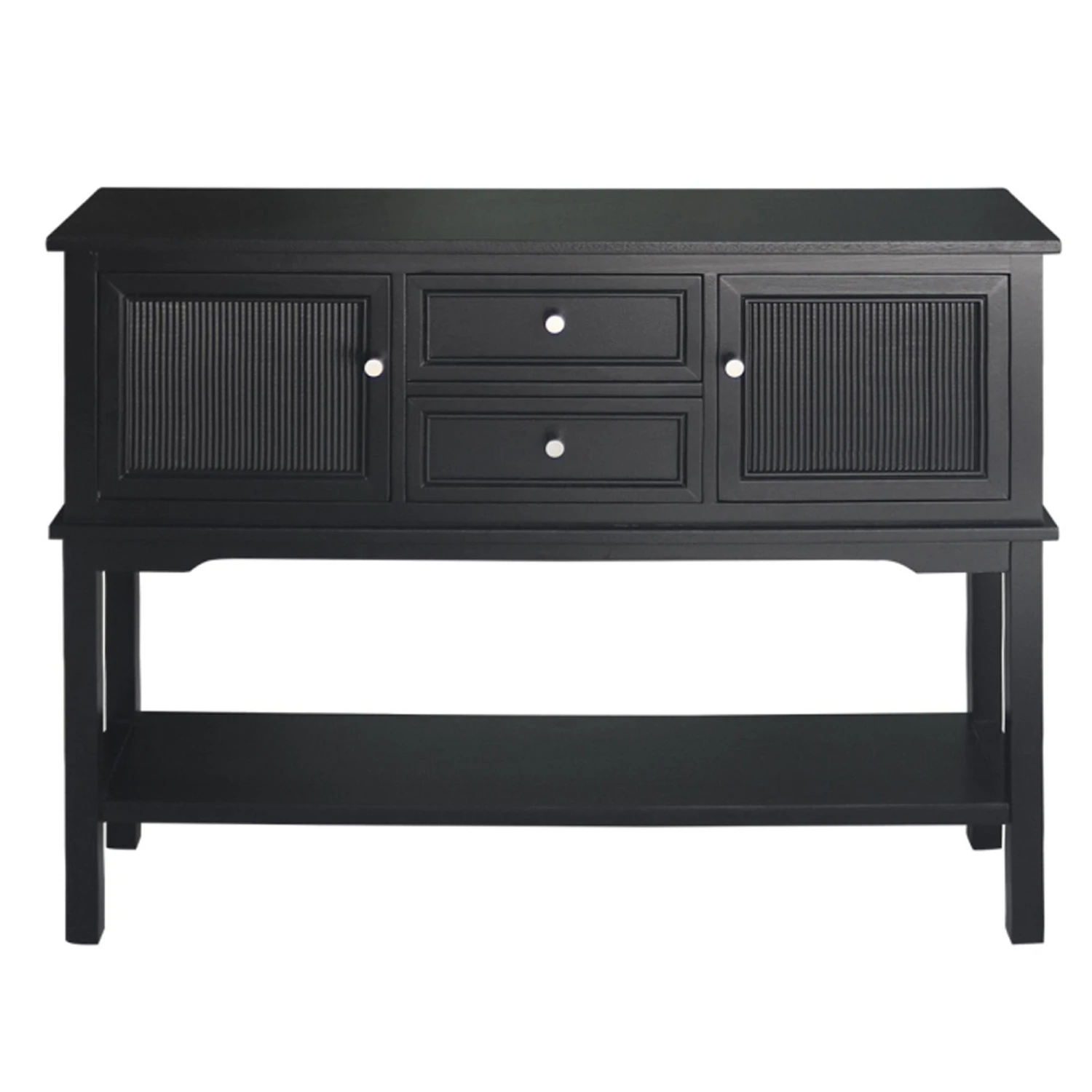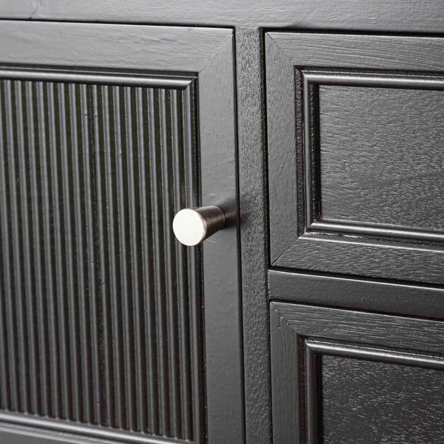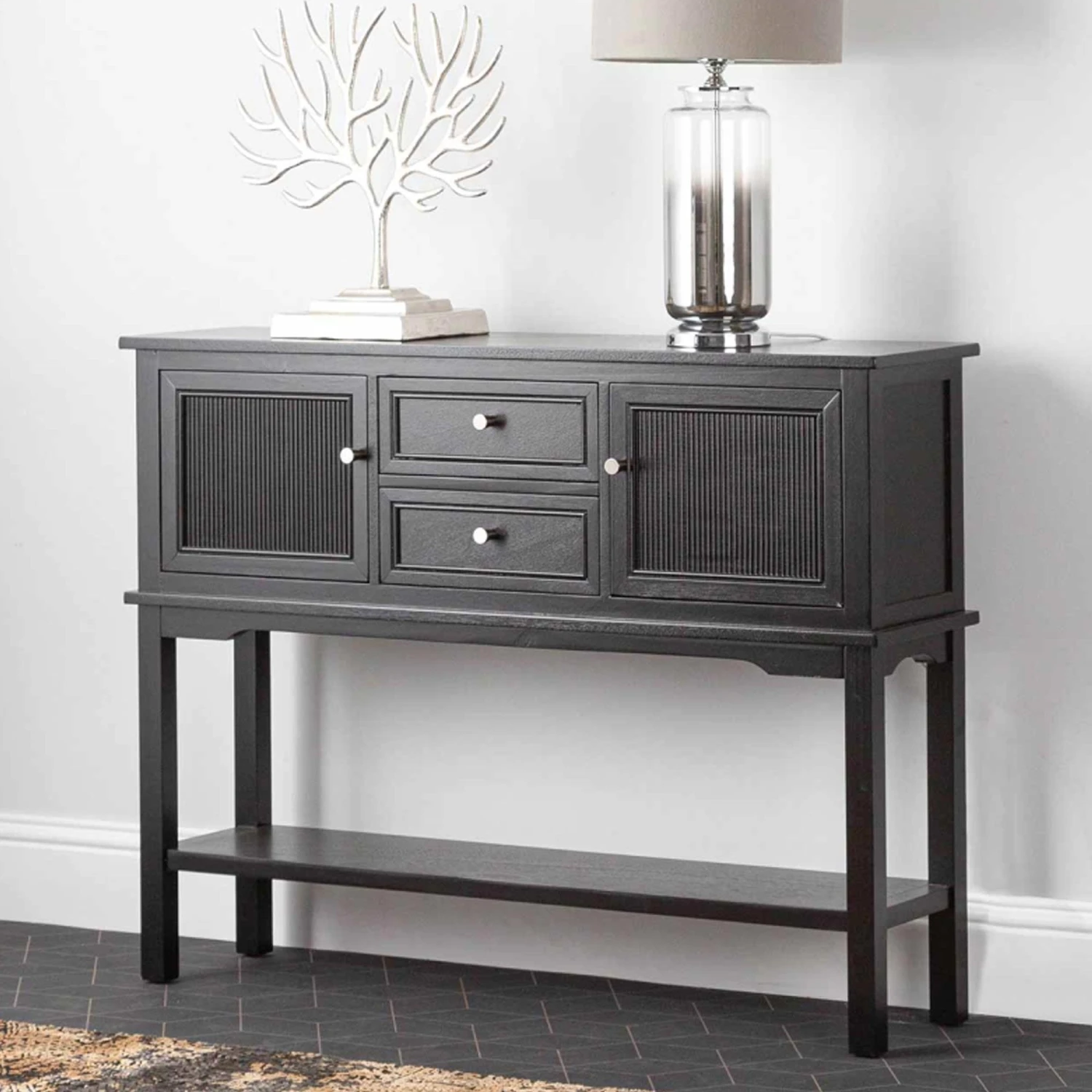 The sophisticated design Lindon 2 Door 2 Drawer Sideboard Black comes in a black wood finish. To the bottom is a fixed shelf for extra storage along with 2 drawers featuring a grooved design and 2 doors with a grooved line pattern, for a simplistic yet style look. The sideboard is finished with a choice of silver or gold handles to suit your interiors.