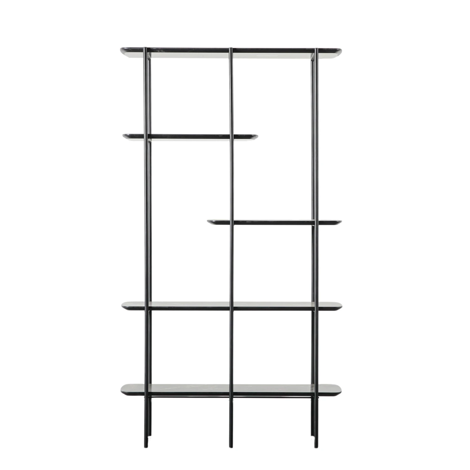 A beautiful focal point for your dining room or lounge, this Ludworth Black Open Display Unit is perfect for storing your decorative ornaments, photo frames or books. Coming as a contemporary style display unit, it has a sturdy iron metal frame with 4 shelves that are made with a black faux marble finish to add a bit of luxe to your interior decor. With an open-design, each shelf provides sufficient storage space with 2 smaller singular shelves above, perfect to display a houseplant or two.Â