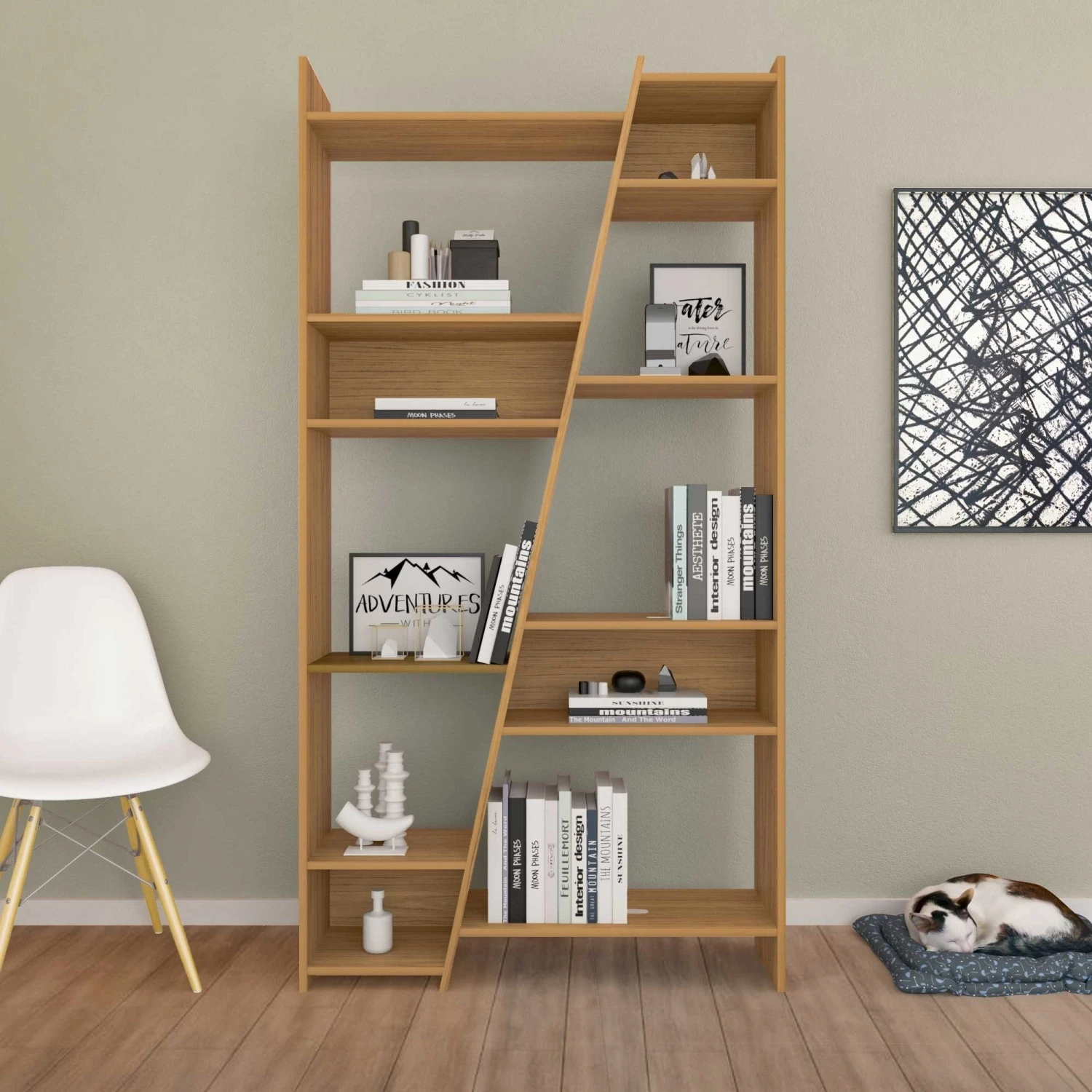 In a compact rectangular shape, this Naples Oak Effect Tall Bookcase is ideal for those with limited floor space but with a need for somewhere to proudly store their favourite books. In a beautiful oak effect finish, it comes crafted from top quality MDF and features a multi-shelf storage system in an asymmetric design. Ideal for those who love to read, it provides a vast amount of space, giving you the chance to store your books in order and neatly tucked away.Â