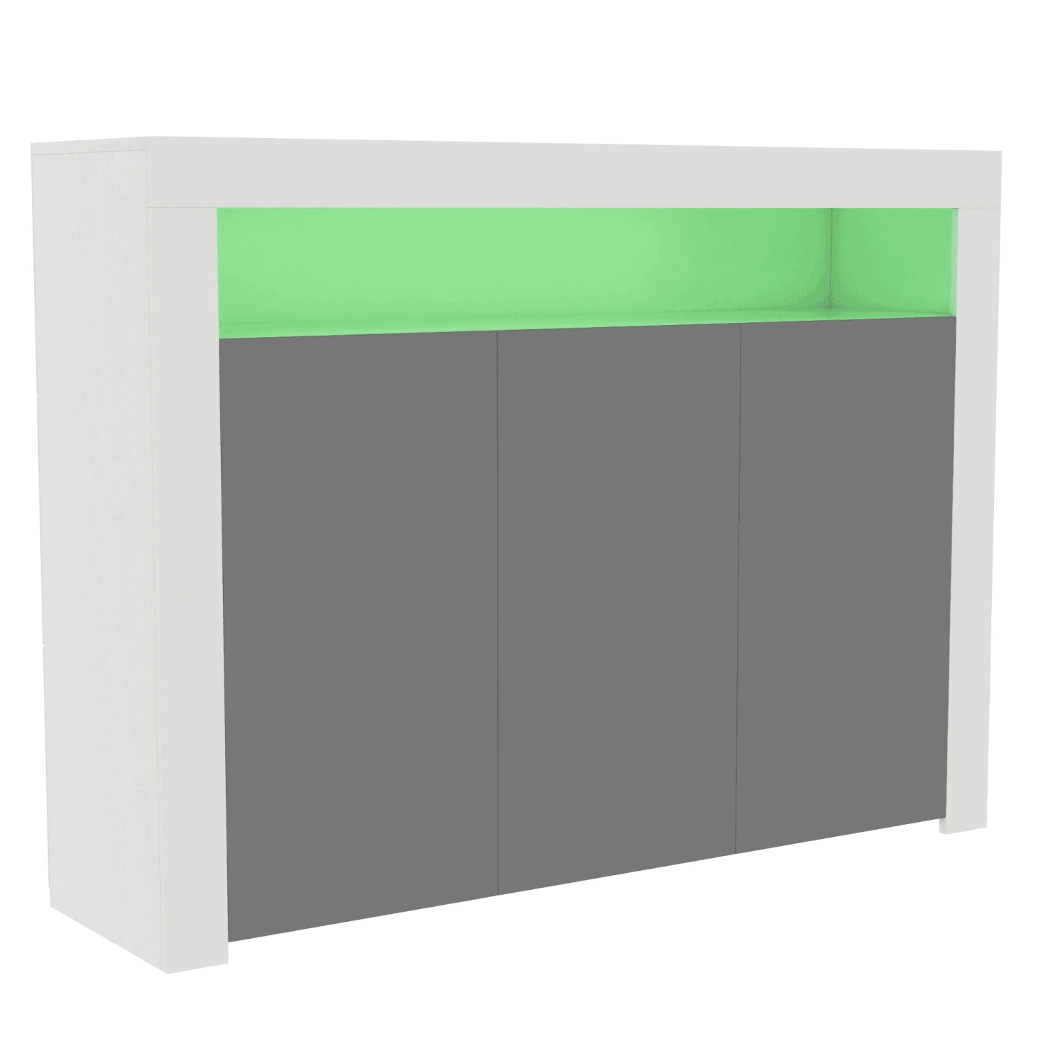 Jazz up your home interior with this Nova 3 Door White & Grey LED Sideboard. It gives the room a warm, glowing feeling from the use of its LED lights present above the storage space. Featuring 3 doors for storage, this Nova sideboard allows you to keep everything neatly organised inside to de-clutter the room. Practical and stylish, what’s not to love? It’s manufactured using top quality wood for a solid structure and is available in a variety of different colours for you to choose from in order to match your home interior.
