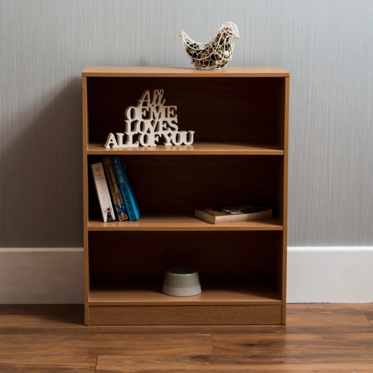 Complete with an oak finish, this bookcase is just what your home needs in terms of style and storage, helping to better your home the low bookcase design will influence how you organise your books and reading materials. Providing 3 shelves of storage with a wooden oak finish, it will upgrade your contemporary home, making you proud to show off to all of your house guests.