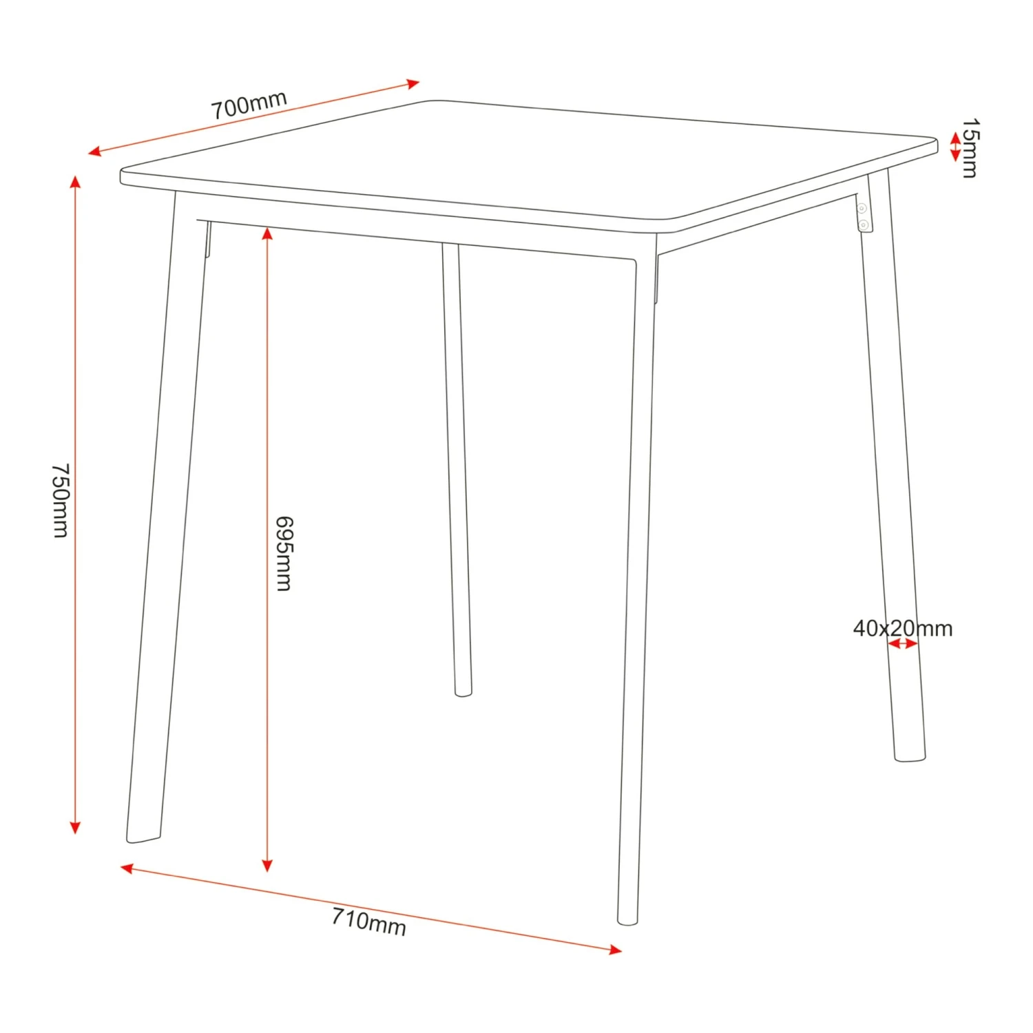 - Table – Width 71cm, Depth 70cm, Height 75cm