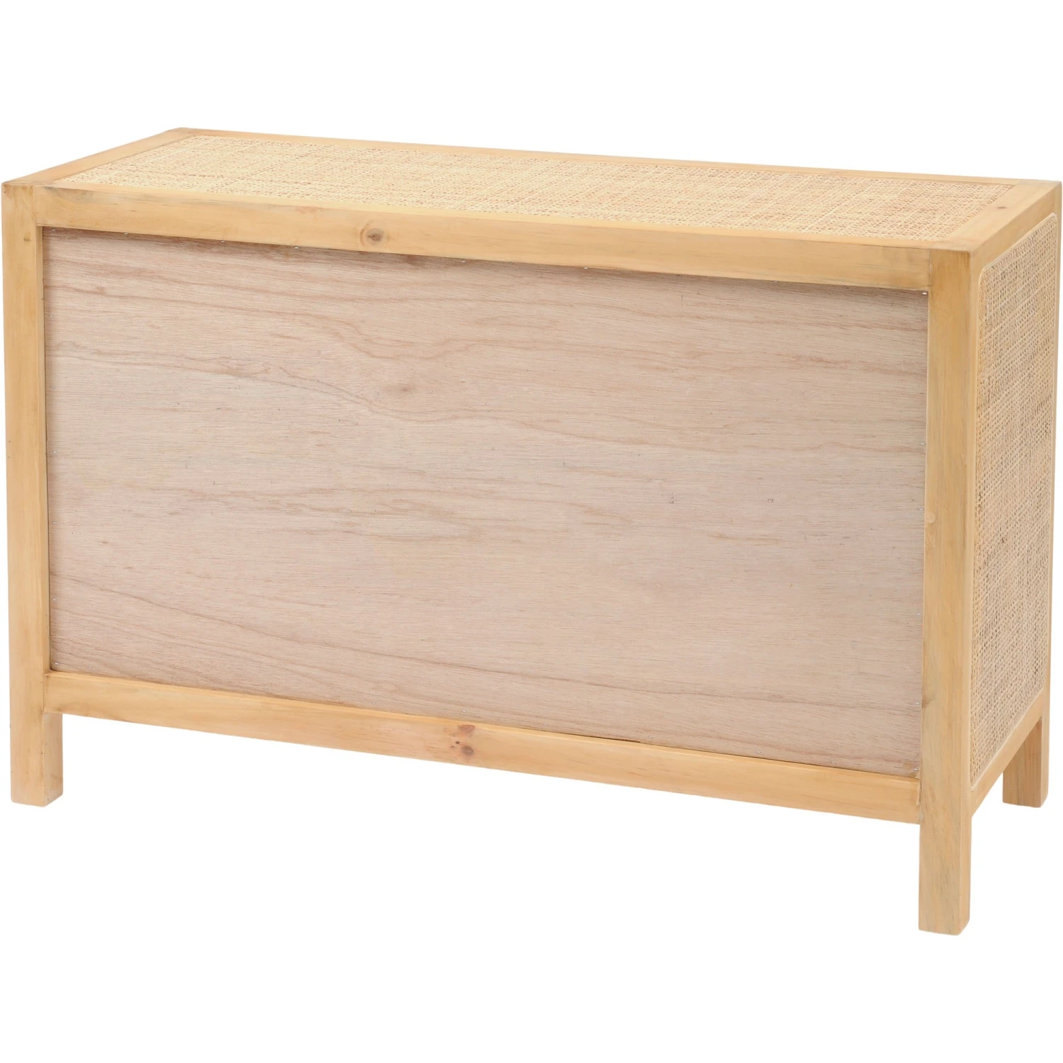 Adding a rustic touch to your home with this Toba Natural Rattan and Cane Two Door Cabinet. The cabinet is crafted with a natural rattan with a lacquered finish and complete with woven sides. This contemporary design has 2 doors with internal shelving inside. Display in your living room, dining room, bedroom or even your hallway for extra storage.