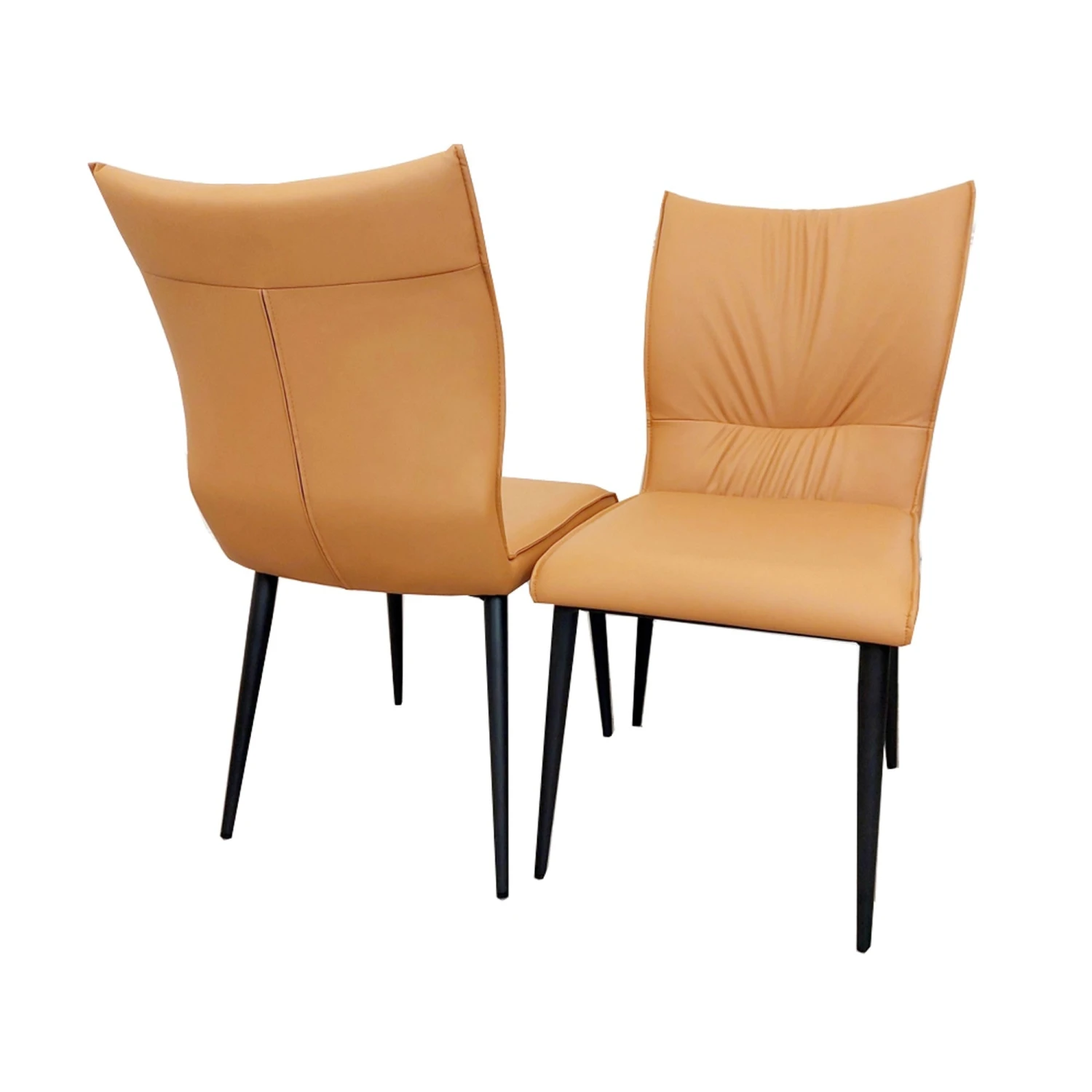 Enhance the look of your dining room when you discover this beautiful Venus Dining Table with 4 Tan Flora Chairs. Guaranteed to impress with its tan, leather upholstered chairs surrounding its black glass and metal curved base dining table, it allows you to gather family or friends to dine in the evening in both comfort and style.