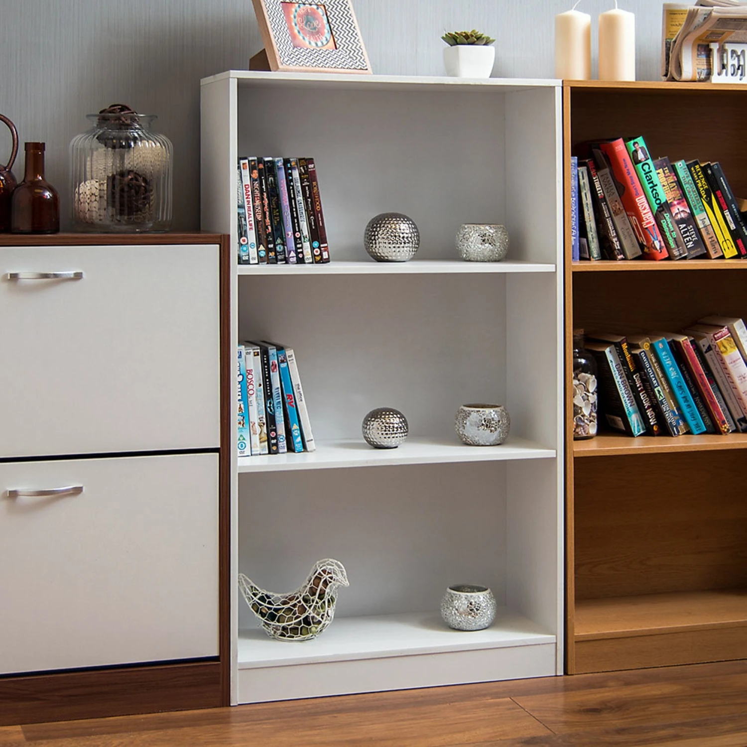The white finish of this bookcase allows it to make for a great addition to your modern furniture area, complete with the look you desire for your contemporary dining area, this 3 tier bookcase can be added to any style of interior scenario. Adding your books, ornaments and photo frames will make sure you get the most use out of the White 3 Tier Bookcase.